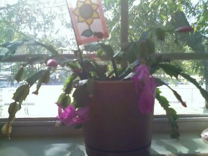 Below is another houseplant blooming, I call it “Mixed up Cactus” it’s really a Christmas Cactus, but the crazy thing didn’t start blooming till January and I already took all my Christmas stuff down- oh well, it’s pretty! Anyway, I needed the blooms more now, I guess. Thank you again, Lord!
