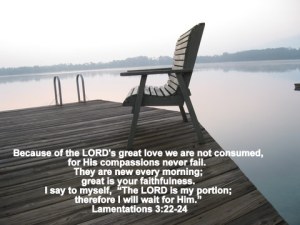 In the chair in our bedroom is a favorite meeting place for us. And of course, I always share my heart in my vehicle. I would even say—-the Spirit resides there! (I wonder if my boss felt Him when he borrowed my truck this morning?–oooo I hope so!!!)