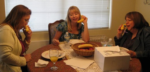 And we have 3 little friends who think you can talk into a banana….