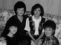 (Pictured: top picture-Tiffany, me and April; bottom picture- Mother, Wanda, Aimee and me-yes, an old picture–you can tell by the poufy hair!)