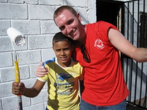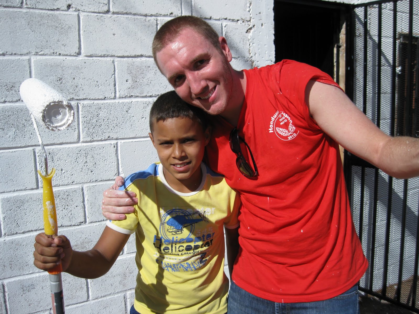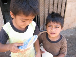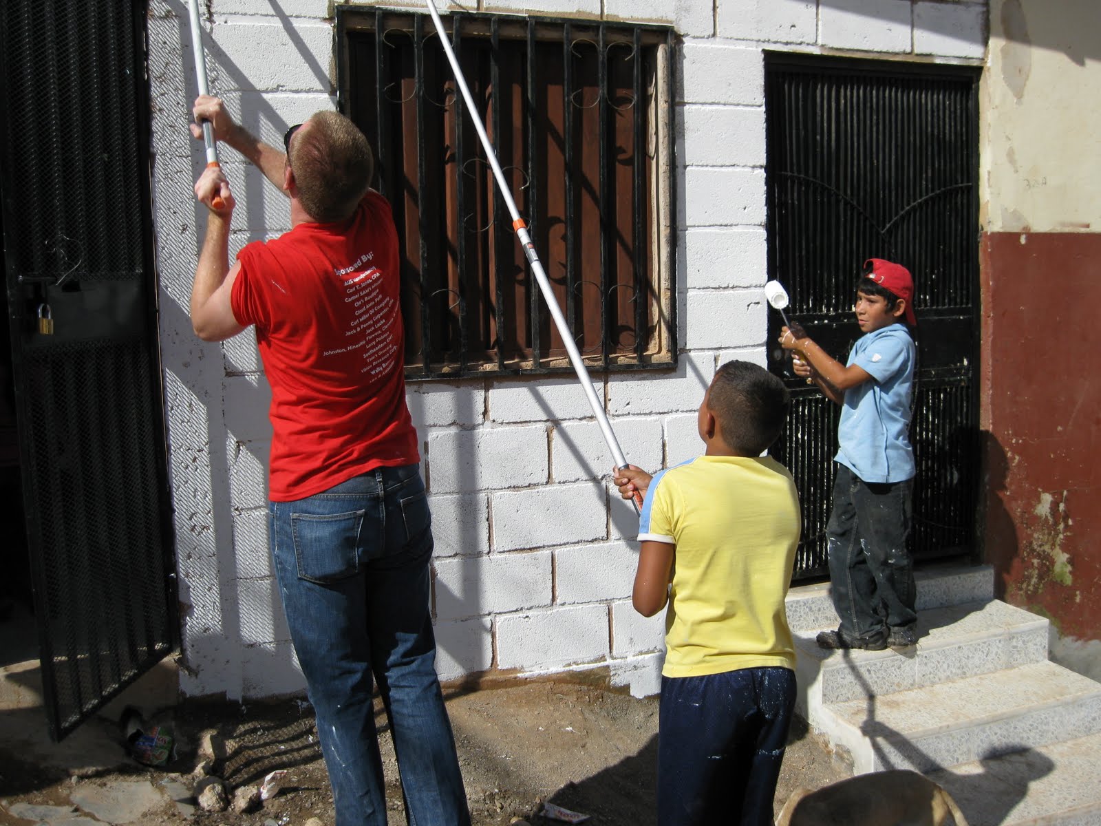 Aaron found him a painting partner, Elmin. The little boy with the red cap is “Carlos”. He was very much ALL over the place! Getting in to things…he painted a poor black dog with several white streaks….harassing anyone that stopped long enough to listen. I told someone–he will more than likely be a preacher–or a missionary! 🙂 (Not that they harass anyone–but the fact that he has more energy than he knows what to do with!)