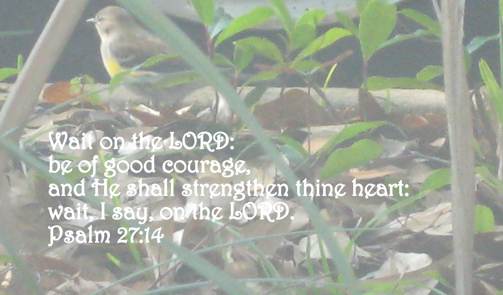 I remember asking Wanda what her favorite verse was. It was Psalm 27:14. But she couldn’t remember the words exactly. Nor where it was found exactly. So we began a big search. When we couldn’t find it…we called the “preacher”. Aimee’s husband. Actually, Mark is a minister too, but we knew he was busy…(Juno was as well…but it was easier). When we found it, Aimee wrote it on the dry erase board that the nurses used to keep up with Wanda’s intake and output.