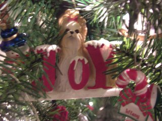 This little “Shih Tzu” ornament was a gift last year from a dear friend. Scooter is not the hair bow wearing type of Shih–but I do get creative with his neck scarves. 🙂